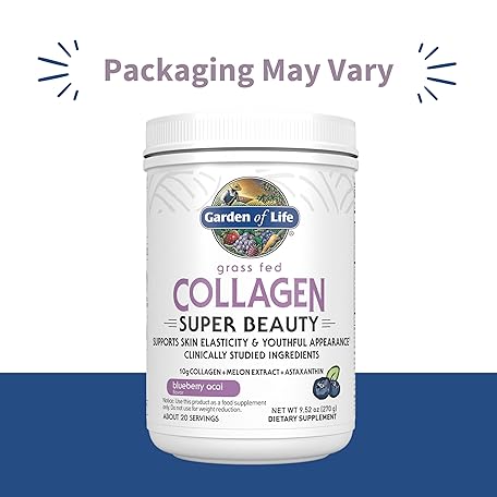 Sản phẩm Garden of Life Grass Fed Collagen Super Beauty Powder - Blueberry Acai, 20 Servings, for Women Skin Hair Nails Joints, Collagen Peptides Powder + Protein Supplements đang được bán với giá ưu đãi là $36.6131 tại nước Mỹ.