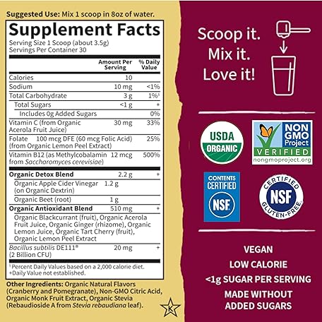 Thông tin sản phẩm Garden of Life Organic Beet Root Powder with Antioxidants, Vitamin C, Probiotics & Apple Cider Vinegar for Digestive & Liver Health – Beets Detox – Vegan, Non GMO, Cranberry Pomegranate, 30 Servings