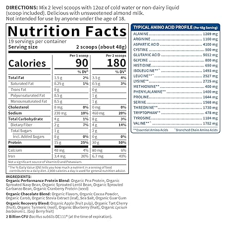 Thông tin sản phẩm Garden of Life Organic Vegan Protein Powder with Probiotics, BCAAs, NSF Certified, Gluten Free & Sport, Non GMO, Sport Protein Powder, 19 Servings, Chocolate