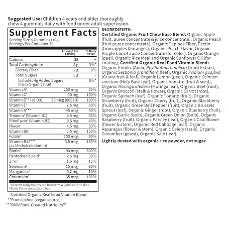 Thông tin sản phẩm Garden of Life Organics Kids Gummy Vitamins - Fruit - Certified Organic, Non-GMO & Vegan Complete Children's Multi - B12, C & D3 - Gluten, Soy & Dairy Free, 120 Real Fruit Chew Gummies