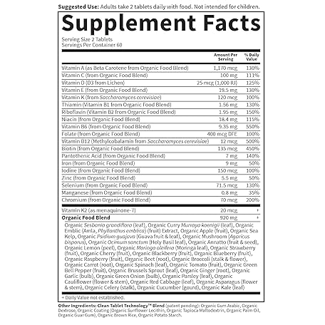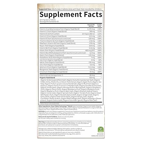 Thông tin sản phẩm Garden of Life Organics Multivitamin for Women, Womens Multi with Vitamin C, D, Folate, B6, B12, Biotin, Iron, Vegan Whole Food Vitamins for Women, Energy, Skin, Nails, 120 Tablets