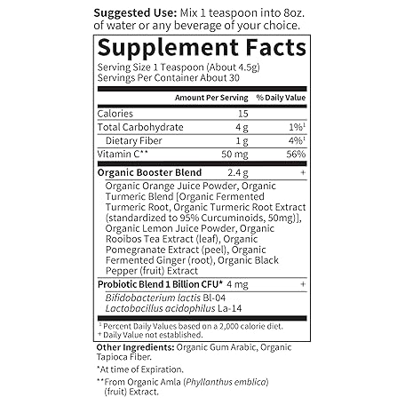 Thông tin sản phẩm Garden of Life Organics Turmeric Booster Inflammatory Response Powder - 30 Servings, 50mg Curcumin (95% Curcuminoids) & Probiotics, Organic Non-GMO Vegan & Gluten Free Herbal Supplements