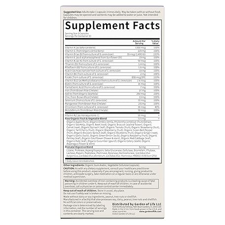 Thông tin sản phẩm Garden of Life Prenatal Multivitamin for Women from Whole Foods with Biotin, Iron & Folate not Folic Acid, Probiotics for Immune Support - Vitamin Code Raw Pregnancy Must Haves - 90 Capsules