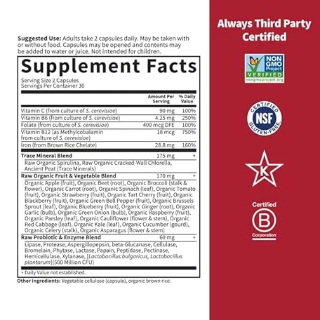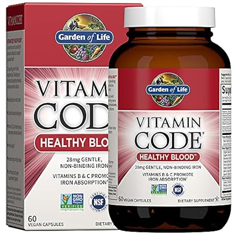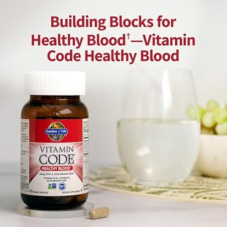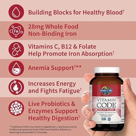 Thông tin sản phẩm Garden of Life Vitamin Code Healthy Blood - Iron Supplement for Women, 60 Vegan Capsules, with Vitamins B, C, Trace Minerals, Fruit Veggies, Probiotics - for Energy and Anemia Support