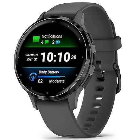 Garmin 010-02785-00 Venu 3S Health Fitness GPS Smartwatch Steel Bezel with Pebble Gray Case 41mm Bundle with Dust Cover 3 Pack, 2-Pack Screen Protector and 2 YR CPS Enhanced Protection Pack
