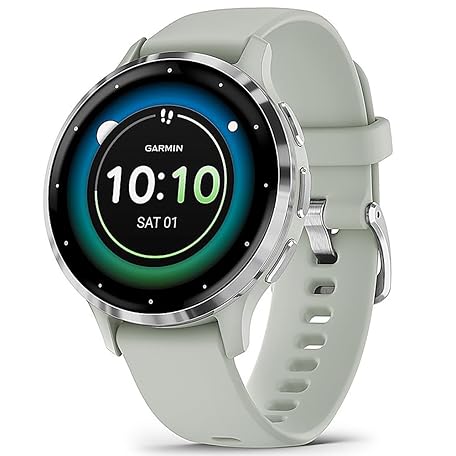 Garmin 010-02785-01 Venu 3S Health Fitness GPS Smartwatch Steel Bezel with Sage Gray Case 41mm Bundle with Dust Cover 3 Pack, 2-Pack Screen Protector and 2 YR CPS Enhanced Protection Pack