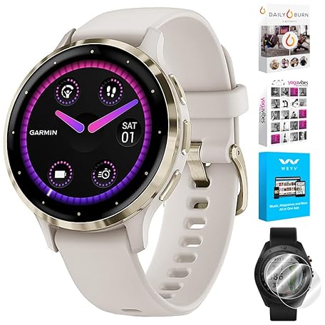 Garmin 010-02785-04 Venu 3S Health Fitness GPS Smartwatch Gold Steel Bezel with Ivory Case 41mm | Official USA Partner Model | Bundle with Deco Screen Protector, Fitness & Wellness Suite