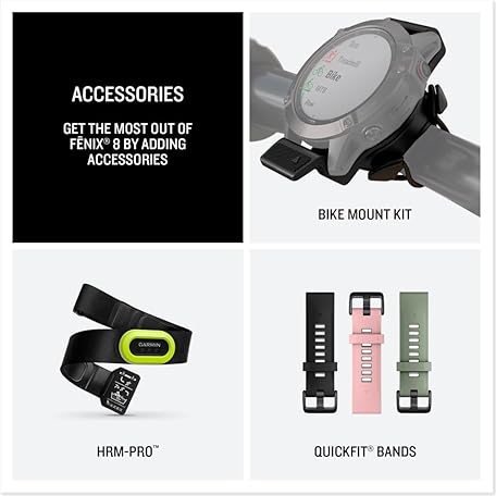 Thông tin sản phẩm Garmin fēnix® 8 – 51 mm, AMOLED, Sapphire, Premium Multisport GPS Smartwatch, Long-Lasting Battery Life, Dive-Rated, Built-in LED Flashlight, Carbon Gray DLC Titanium with Pebble Gray Band
