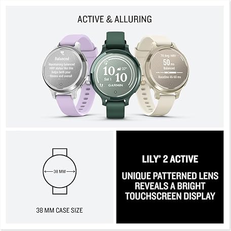 Garmin Lily® 2 Active, Small and Stylish Smartwatch, Built-in GPS, Hidden Display, Patterned Lens, Up to 9 Days Battery Life, Jasper Green with Jasper Green Silicone Band