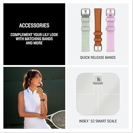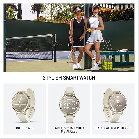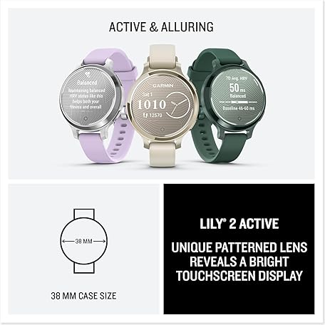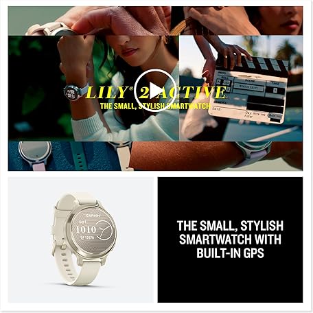 Thông tin sản phẩm Garmin Lily® 2 Active, Small and Stylish Smartwatch, Built-in GPS, Hidden Display, Patterned Lens, Up to 9 Days Battery Life, Lunar Gold with Bone Silicone Band