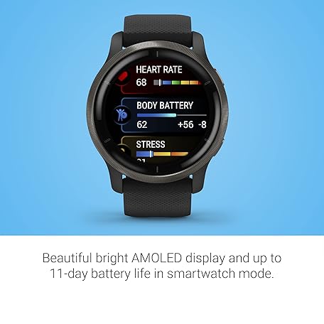 Thông tin sản phẩm Garmin Venu 2, GPS Smartwatch with Advanced Health Monitoring and Fitness Features, Slate Bezel with Black Case and Silicone Band