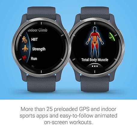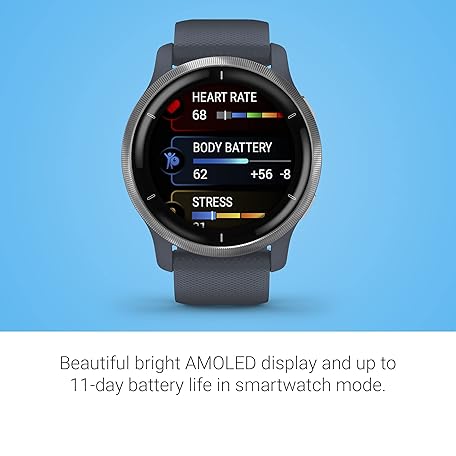 Thông tin sản phẩm Garmin Venu 2 (Renewed), GPS Smartwatch with Advanced Health Monitoring and Fitness Features, Silver Bezel with GraniteBlue Case and Silicone Band