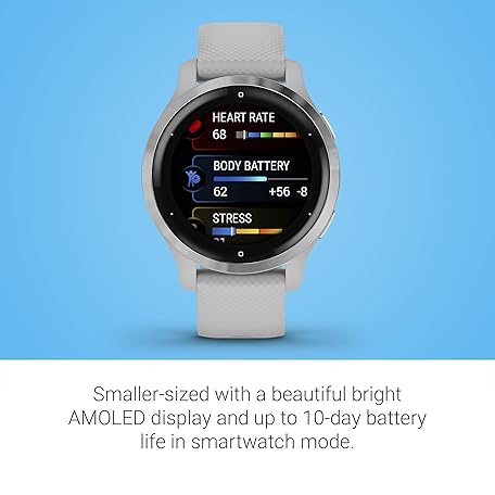 Thông tin sản phẩm Garmin Venu 2S (Renewed), Smaller-Sized GPS Smartwatch with Advanced Health Monitoring and Fitness Features, Silver Bezel with Light Gray Case and Silicone Band, (010-02429-02)