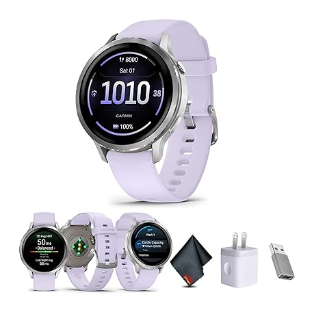 Garmin Venu 4, 41mm, Advanced Fitness Tracker GPS Smartwatch, 1.2" AMOLED Display, Built-in Flashlight, 10 Days of Battery Life, Silver with Periwinkle Silicone Band (Watch Bundle)