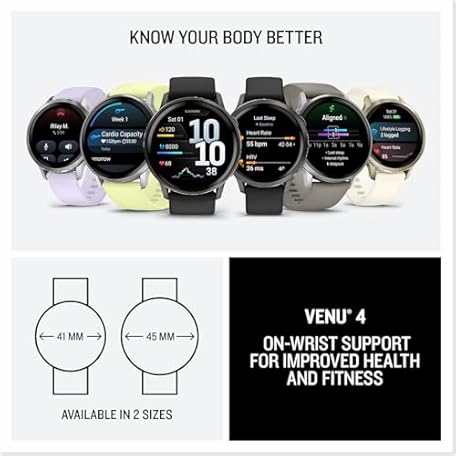 Thông tin sản phẩm Garmin Venu® 4, 41mm, Advanced Health and Fitness GPS Smartwatch, Bright and Colorful Display, Built-in Flashlight, 10 Days of Battery Life, Slate with Black Silicone Band