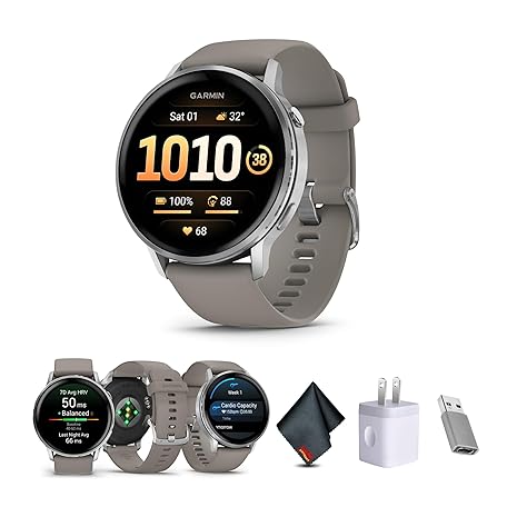 Garmin Venu 4, 45mm, Advanced Fitness Tracker GPS Smartwatch, 1.4" AMOLED Display, Built-in Flashlight, 12 Days of Battery Life, Silver with Silver Gray Silicone Band (Watch Bundle)