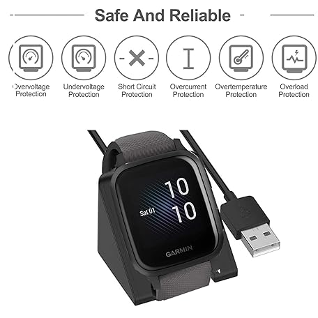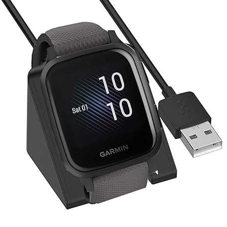• Garmin Venu Sq Charger - Replacement Charging Cradle Dock Compatible with Venu S/2/2S Plus/EPIX/Fenix 7 Series/Forerunner 255/955 (Black)