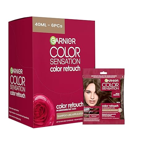 Thông tin sản phẩm Garnier Color Sensation Color Retouch, Demi Permanent Hair Dye for Roots with 100% Gray Coverage, Rich Brown Hair Dye 6.0, Pack of 6 (Packaging May Vary)