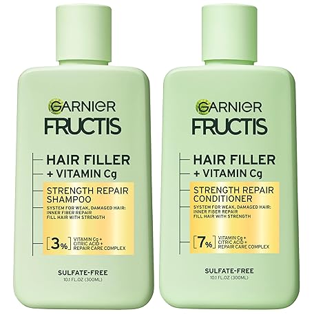 Thông tin sản phẩm Garnier Fructis Hair Filler Strength Repair Shampoo and Conditioner Set with Vitamin Cg, Weak Hair Care, 10.1 Fl Oz, 2 Items, 1 Kit