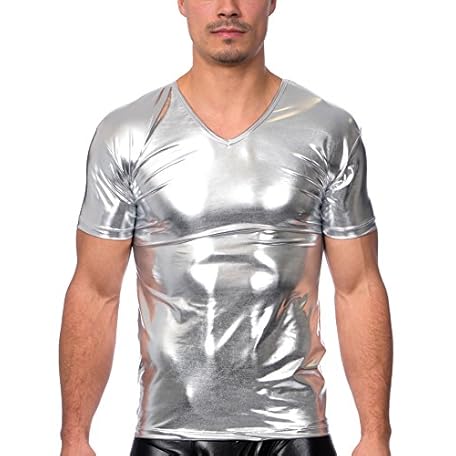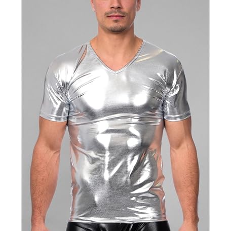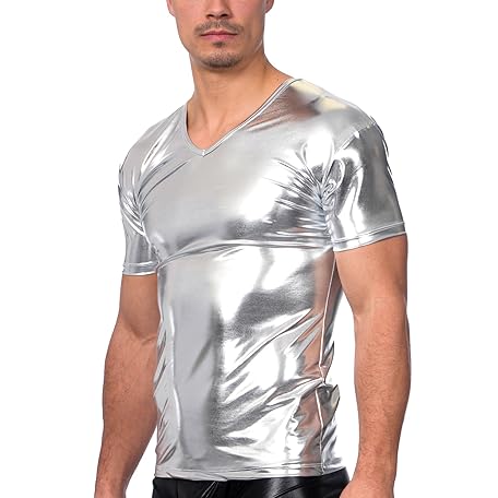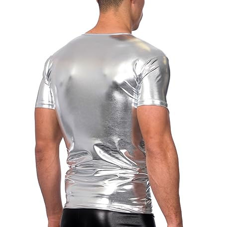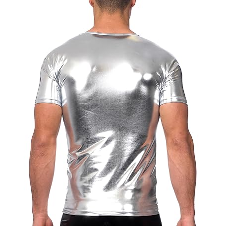 • Gary Majdell Men's Liquid Shiny Metallic V-Neck Short Sleeve T-Shirt for Nightclub