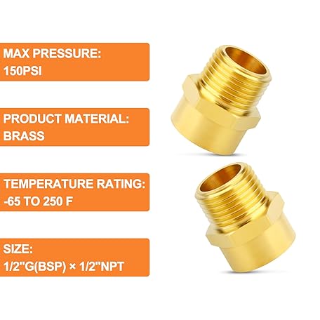 • GASHER 5Pcs 1/2" G Thread Female × 1/2" NPT Thread Male Brass Pipe Fitting Adapter, G to NPT Adapter