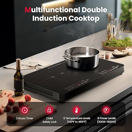 Thông tin sản phẩm GASLAND SwiftChef Double Burner Induction Cooktop, 1800W Induction Countertop with 8 Power Levels, Dual Cooker with Sensor Touch Control, Child Safety Lock & Timer, ETL-certified for Tiny House