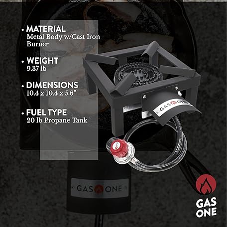 Thông tin sản phẩm GasOne High Pressure Single Propane Burner - Outdoor Cooking with Heat Shield and Guard – Propane Burner Head for Camping, Tailgating, Seafood Boil, Home Brewing - Patent Pending