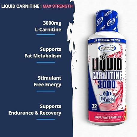 Thông tin sản phẩm Gaspari Nutrition Liquid L-Carnitine 3000, Stimulant Free, Increased Metabolism, Enhanced Energy, Non GMO, Gluten Free, BPA Free (32 Servings, Sour Watermelon)