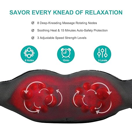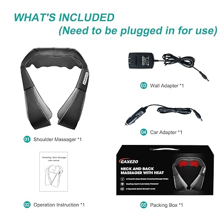 GAXEZO Shiatsu Back and Neck Massager with Heat, Deep Tissue Kneading Back Massager for Pain Relief, Electric 4D Shoulder Massage for Neck, Shoulder - Gifts for Men, Women (NOT Cordless)