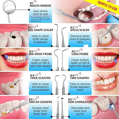 Thông tin sản phẩm G.CATACC 10 Pack Dental Tools, Professional Plaque Remover for Teeth Cleaning Tools Set, Stainless Steel Hygiene Kit with Dental Pick Tooth Scraper Plaque Tartar Remover Tongue Cleaner - with Case