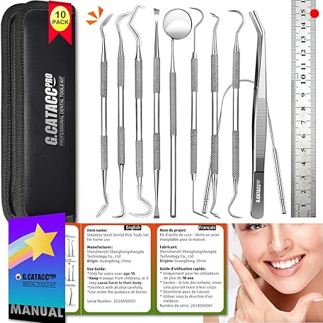 Sản phẩm G.CATACC 10 Pack Dental Tools, Professional Plaque Remover for Teeth Cleaning Tools Set, Stainless Steel Hygiene Kit with Dental Pick Tooth Scraper Plaque Tartar Remover Tongue Cleaner - with Case đang được bán với giá ưu đãi là $10.8237 tại nước Mỹ.