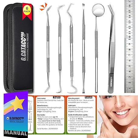 Thông tin sản phẩm G.CATACC Dental Tools, Dental Pick Teeth Cleaning Tools Hygiene Kit, Plaque Remover for Teeth, Professional Stainless Steel Tooth Scraper Plaque Tartar Cleaner - with Case