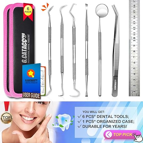 G.CATACC Dental Tools, Dental Pick Teeth Cleaning Tools Hygiene Kit, Plaque Remover for Teeth, Professional Stainless Steel Tooth Scraper Plaque Tartar Cleaner - with Case