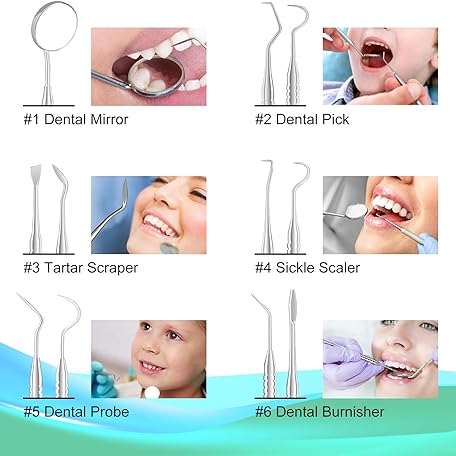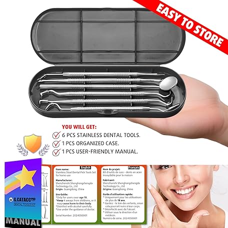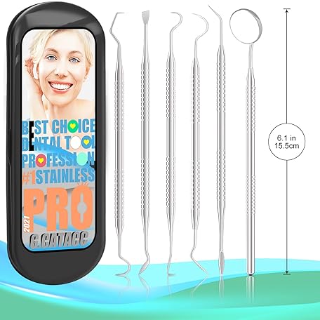 Thông tin sản phẩm G.CATACC Dental Tools, Metal Dental Pick Teeth Cleaning Tools for Home Use, Stainless Steel Oral Care Hygiene Kit with Tooth Scraper Plaque Tartar Remover - with Case