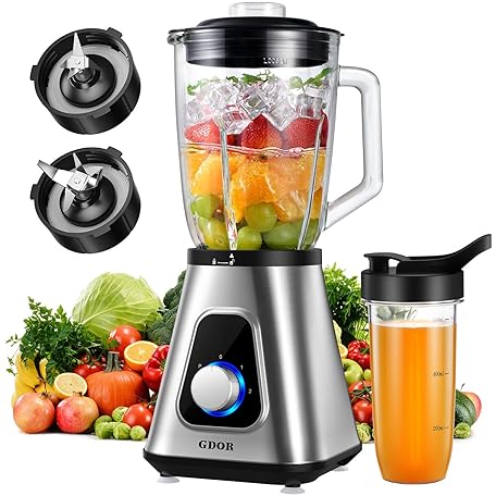 Thông tin sản phẩm GDOR 1200W Blender for Smoothies and Shakes, 52 Oz Countertop Blender & 22 Oz Personal Blender Combo, 6-leaf Blade, 3 Adjustable Speed for Juices, Frozen Fruit Drinks, Sauces, Self-Cleaning