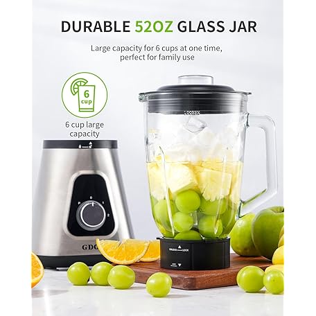 Thương hiệu GDOR là cái tên nổi tiếng được rất nhiều khách hàng trên thế giới chọn lựa. Với kiểu dáng đẹp mắt, sang trọng, sản phẩm GDOR 1200W Blender for Smoothies and Shakes, 52 Oz Countertop Blender & 22 Oz Personal Blender Combo, 6-leaf Blade, 3 Adjustable Speed for Juices, Frozen Fruit Drinks, Sauces, Self-Cleaning là sự lựa chọn hoàn hảo nếu bạn đang tìm mua một món cho riêng mình.