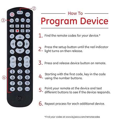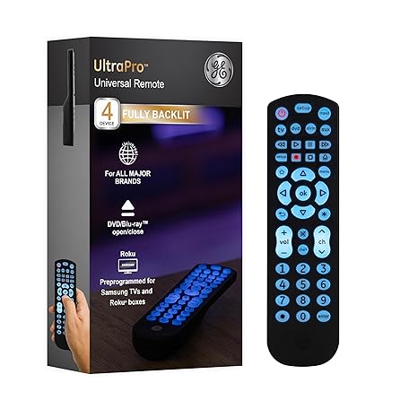 Thông tin sản phẩm GE Backlit Universal Remote Control for Samsung, Vizio, LG, Sony, Sharp, Roku, Apple TV, RCA, Panasonic, Smart TV, Streaming Players, Blu-Ray, DVD, 4-Device, Black, 40081 Black, Backlit