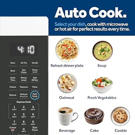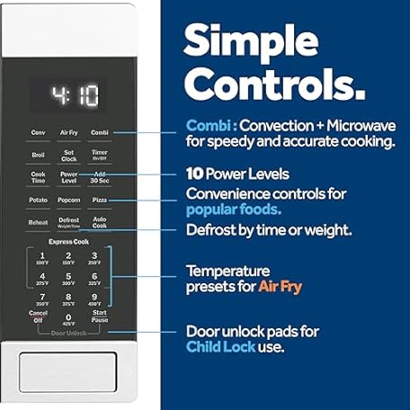 Thông tin sản phẩm GE GCST10A1WSS 1.0 Cu Ft Convection Microwave Oven, 1050W Countertop Air Fry Microwave with Broil & Crisper Pan, Compact Stainless Steel Design