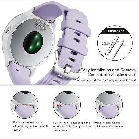 GEAK Compatible with Garmin Vivoactive 5 Watch Band/Vivoactive 3 Watch Bands,20mm Silicone Band for Garmin Venu 2 Plus/Venu Sq/Venu Watch Bands/Forerunner 645/245 Music Smartwatch Women Men Lavender