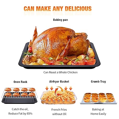 Thông tin sản phẩm Geek Chef Air Fryer Toaster Oven 26 QT, Large AirFryer Convection Countertop Oven Combo with Easy Bake, Roast, Broil, Warm, 6 Slice Toast 7-in-1 Functions, 3 Layers with 4 Accessories,Stainless Steel