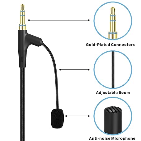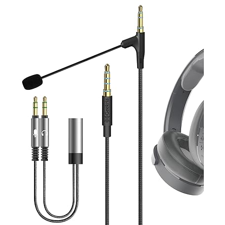 • Geekria Boom Mic Headphones Cable Compatible with Skullcandy Hesh 3, Evo, Crusher Evo, Venue Headsets, 3.5mm Jack Replacement Cord with Boom Microphone for Gaming & Meeting (5.6 ft)