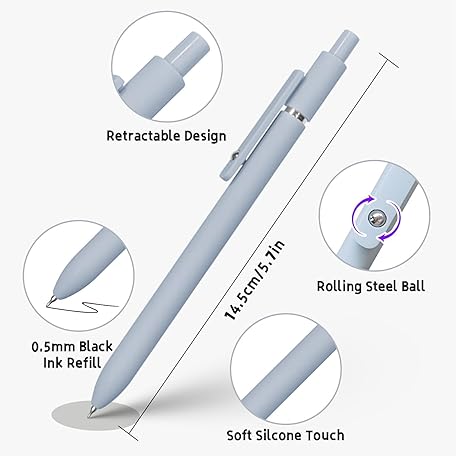 Thông tin sản phẩm Gel Pens, 5 Pcs 0.5mm Black Ink Pens Fine Point Smooth Writing Pens, High-End Series Pens for Journaling Note Taking, Cute Office School Supplies Gifts for Women Men (Morandi)