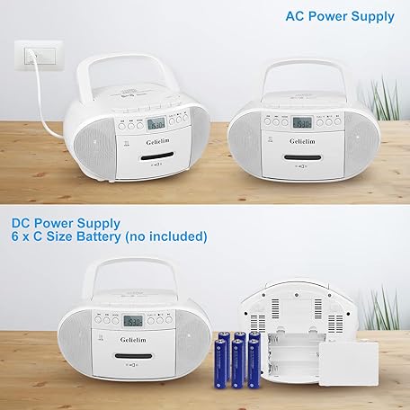 Thông tin sản phẩm Gelielim Portable CD and Cassette Player Boombox Combo, AM/FM Radio Tape Recorder Casette Player with Remote, Bluetooth CD Tape Player USB Playback & Earphone Jack,Battery Powered/Plug in for Home