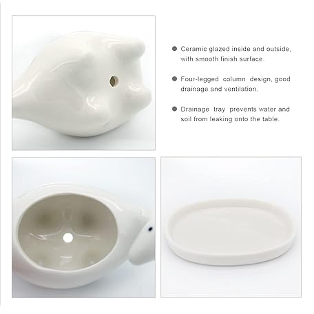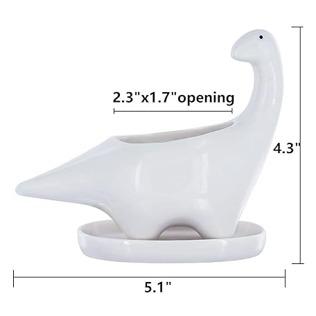 Thông tin sản phẩm GeLive White Dinosaur Ceramic Succulent Planter Flower Plant Pot Window Box with Saucer Cartoon Animal Decor, 5 Inch, Indoor Outdoor