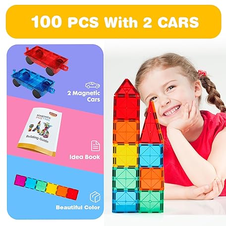 Sản phẩm Gemmicc 100 PCS Magnetic Tiles with 2 Cars, STEM Approved Educational Magnet BuildingToys, Magnet Puzzles Stacking Blocks for Boys Girls đang được bán với giá ưu đãi là $30.0077 tại nước Mỹ.