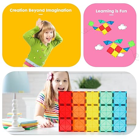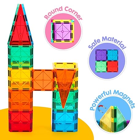 Thông tin sản phẩm Gemmicc 100 PCS Magnetic Tiles with 2 Cars, STEM Approved Educational Magnet BuildingToys, Magnet Puzzles Stacking Blocks for Boys Girls