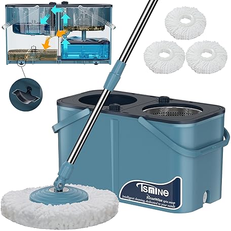 Sản phẩm Gen 1 Large-Capacity Spin Mop and Bucket – for Big Homes & Deep Cleaning Days,4-Chamber System Separates Dirty & Clean Water, 2-GAL Heavy-Duty Design with Wheels & 6 Refill Mop Heads - Blue/Grey đang được bán với giá ưu đãi là $43.5782 tại nước Mỹ.