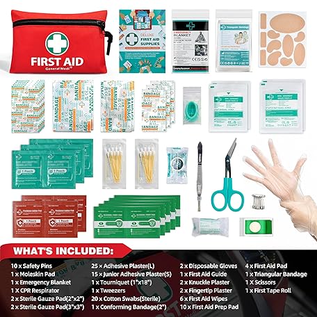 Thông tin sản phẩm General Medi Mini First Aid Kit, 110 Piece Small First Aid Kit - Includes Emergency Foil Blanket, Scissors for Travel, Home, Office, Vehicle, Camping, Workplace & Outdoor (Red)