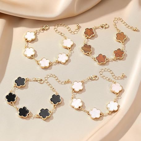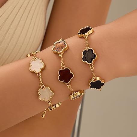 Generic 2 PCS Lucky Flower Bracelet Set for Women, Delicate Floral Chain Link, Cute and Classic Jewelry Accessory, Ideal for Daily Wear and All Occasions