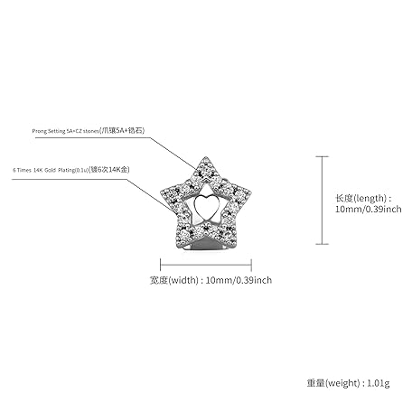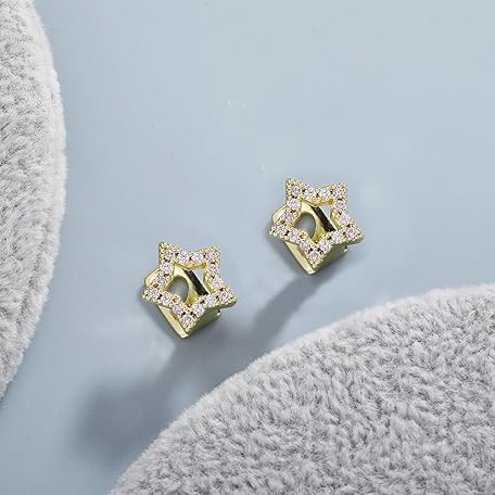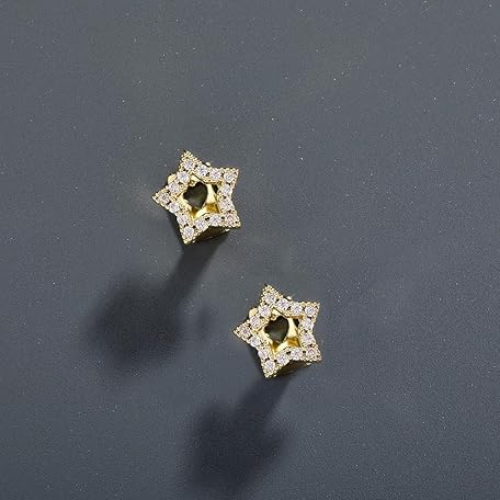 Generic 2 Pieces Pentagram Shape Diamond Cubic Zirconia Gold CZ Grillz Teeth Caps for Men and Women